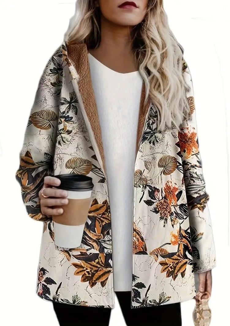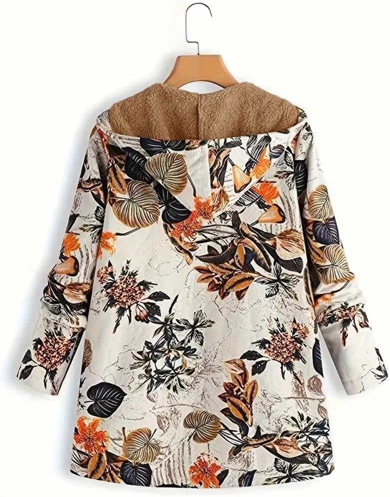 Enfrenta los días fríos con estilo con nuestro abrigo colorido, que combina un hermoso diseño floral en el exterior con suave y lujosa felpa en el interior. Este abrigo no solo está diseñado para mantenerte cálida, sino también para envolverte en una elegante y acogedora caricia floral.