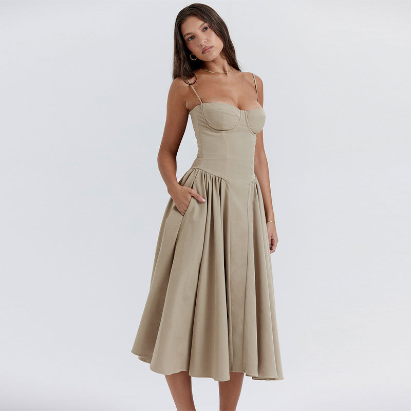 Realza cualquier ocasión especial con nuestro Glamour Atemporal: Nuevo Vestido de Fiesta de Verano Consuelo. Confeccionado con los tejidos de la más alta calidad, este vestido presenta un ajuste ceñido que resalta las curvas y un seductor diseño sin espalda. Con sus detalles intrincados y una confección exquisita, es una verdadera obra de arte, la elección perfecta para una fiesta glamurosa, un evento formal por la noche o una velada de verano.