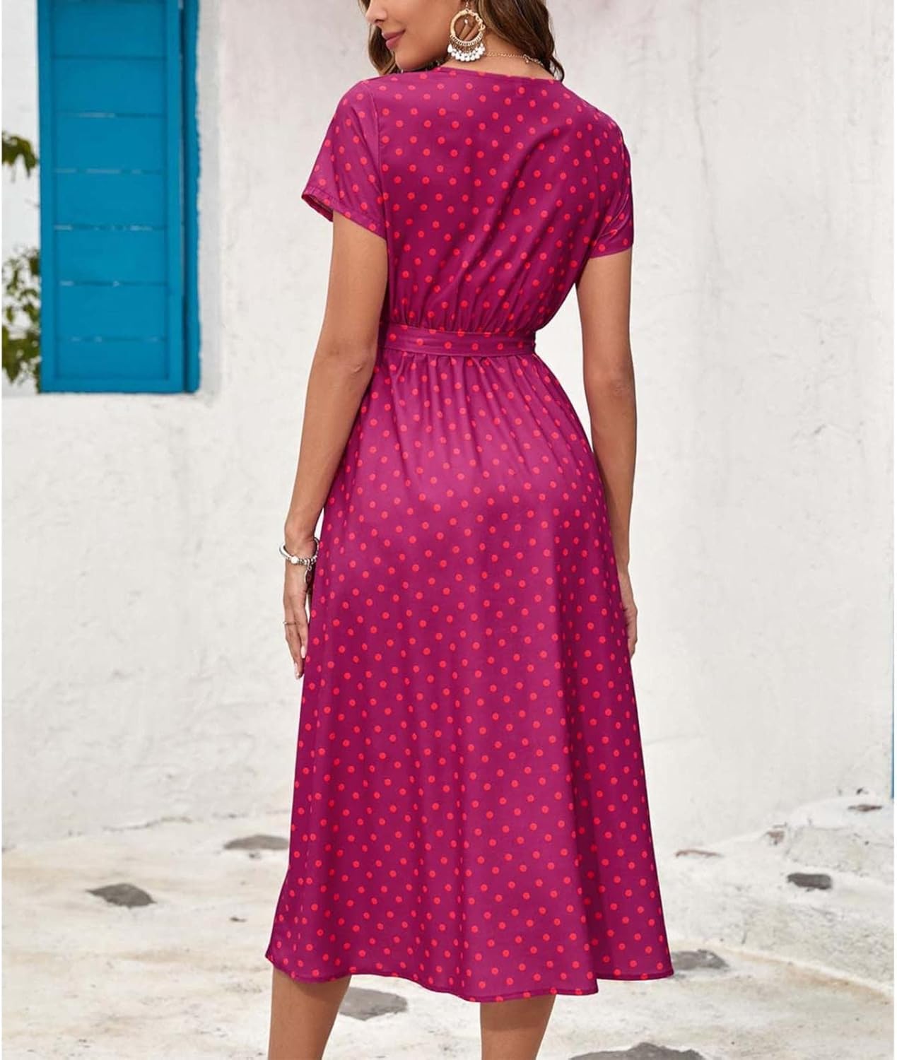 El vestido Fátima combina el encanto de las flores y los lunares con la frescura del verano. Su diseño de mangas cortas y su corte holgado proporcionan una comodidad fresca. Ya sea en la playa o durante las vacaciones, este vestido es tu imprescindible para una elegancia sin esfuerzo.