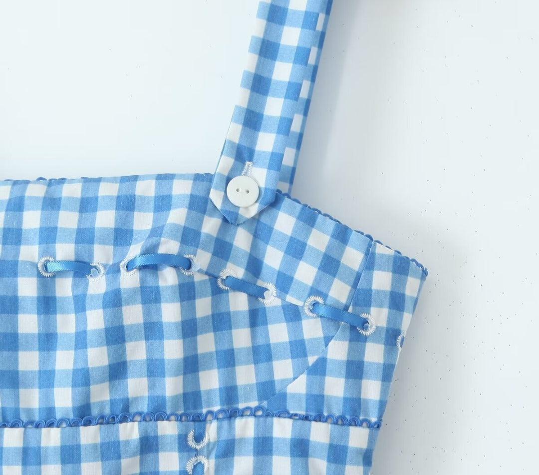 Con un encantador estampado de cuadros vichy y un delicado detalle de cinta entrelazada, este vestido ,,Samara" es, sin duda, uno de nuestros favoritos de esta temporada. El corpiño ajustado resalta tu cintura y nos encanta el delicado contraste de la cinta que recorre todo el diseño para un acabado súper femenino. Se cierra con cremallera en la espalda para ponértelo con facilidad.