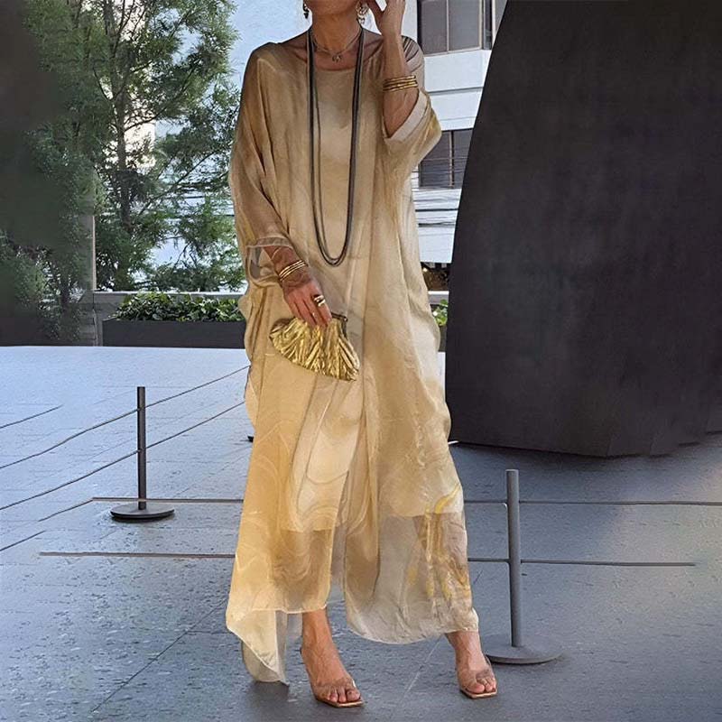 • Ajuste cómodo: Su silueta suelta y fluida garantiza libertad de movimiento, mientras que el diseño resalta la figura con elegancia.